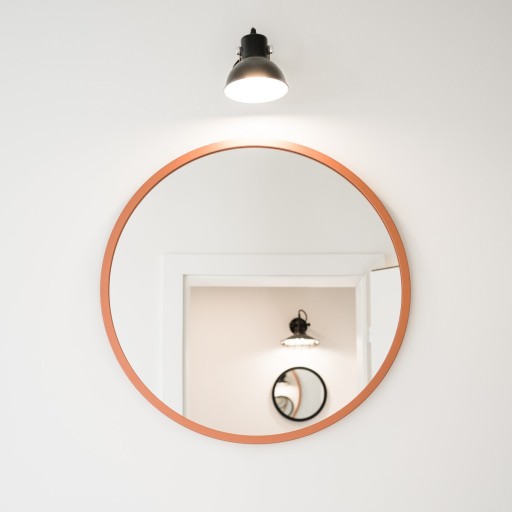 - Kształt lustra, zwłaszcza niski profil ramy oraz system mocowań, zapewniają doskonałe przyleganie do ściany oraz niezwykle delikatny i elegancki wygląd.