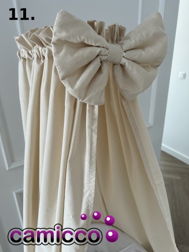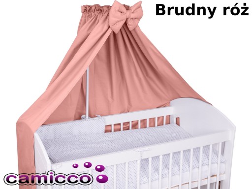 Dodatkowa kokardka tworzy z baldachimem gustowną całość i nadają łóżeczku piękny wygląd