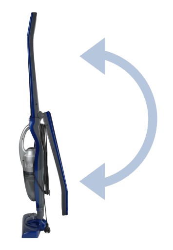 Odkurzacz jest bezworkowy, wszystkie zanieczyszczenia zbiera się w naczyniu zbiorczym o objętości 0,5 litra. Bardzo skuteczny filtr HEPA zapewniający filtrację. Odkurzacz pionowy nie zajmuje dużo miejsca, ponieważ może on być umieszczony w pozycji parkującej, aby nie przeszkadzał. Posiada składany uchwyt do wygodnego przechowywania. Wyjątkowo długi przewód 7 metrów pozwala na zasięg 8 m.