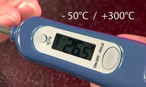 - Szybko i dokładnie dokonuje pomiaru temperatury potraw, napojów, sosów itd. w °C lub °F.