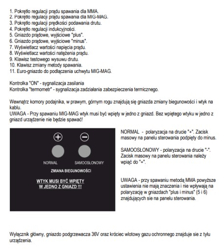 - Instrukcja obsługi w języku polskim całej spawarki oraz wszystkich możliwych funkcji
