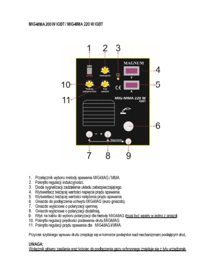 - Instrukcja obsługi w języku polskim całej spawarki oraz wszystkich możliwych funkcji