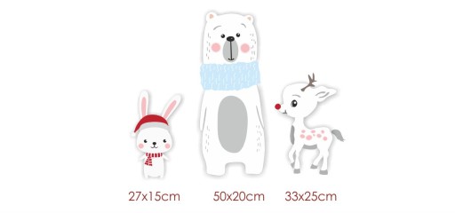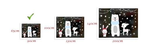 Рождественские наклейки на окно с мишкой Тедди и оленями 90x65см