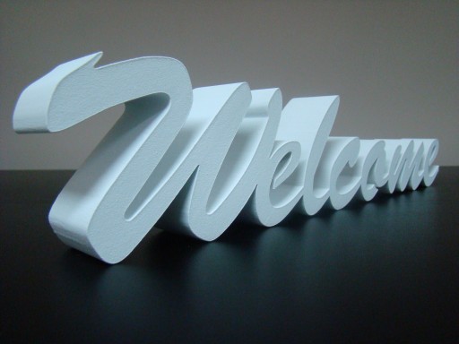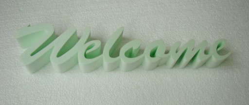 Napis wykonany jest z lekkiego styroduru o grubości około 3cm pomalowany farbami akrylowymi.