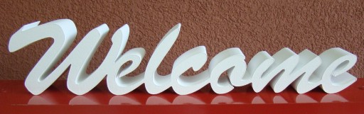 Przedmiotem sprzedaży jest napis dekoracyjny Welcome lub o wymiarze 11x40cm.