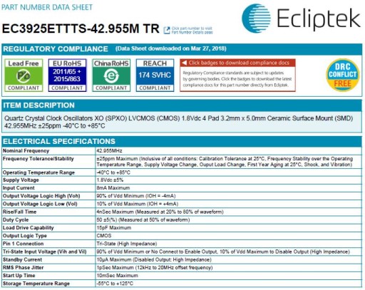 42.955MHZ Generator kwarcowy SMD 5x3mm