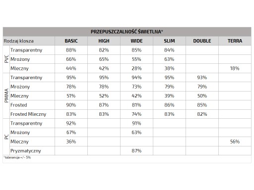 RODZAJE KLOSZY (ZDJĘCIA POGLĄDOWE)
