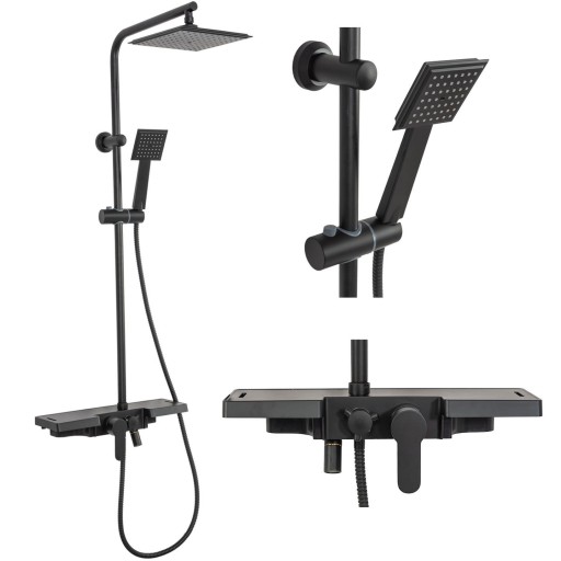 Zestaw Prysznicowy Natryskowy BRAVO Czarny z półką Black Rea