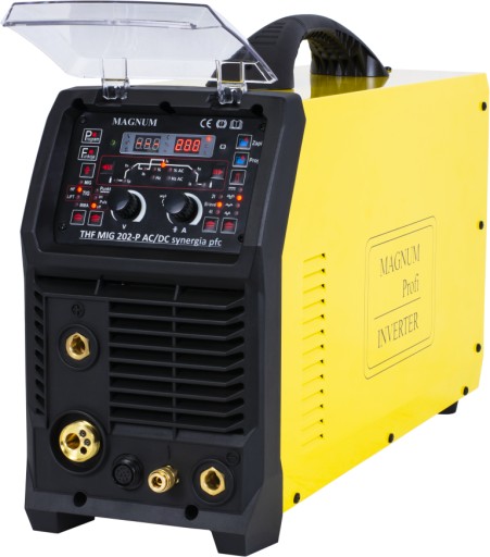 MAGNUM THF MIG 202 to spawarka inwertorowa, która imponuje możliwościami i szerokim zakresem zastosowań. W urządzeniu połączono najbardziej popularne metody spawania (MIG/MAG, TIG AC/DC, PULS, MMA) przy bardzo wysokich parametrach technicznych. Spawarka pozwala na spawanie każdego stopu aluminium, stali, stopów miedzi oraz innych materiałów spawalnych prądem maksymalnym 200A!
