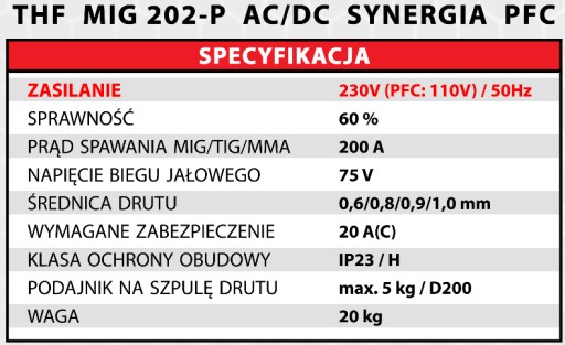 - Spawarka MAGNUM THF MIG 202 PULS SYNERGIA PFC wraz z przewodem zasilającym z wtyczką