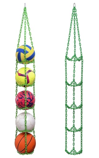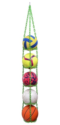 Hak dołączony do zestawu należy zamocować do sufitu lub półki, następnie wystarczy zawiesić na nim wieszak. Produkt jest komfortowy w użytkowaniu, zarówno umieszczanie w nim piłek, jak i ich wyciąganie jest szybkie i wygodne.