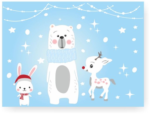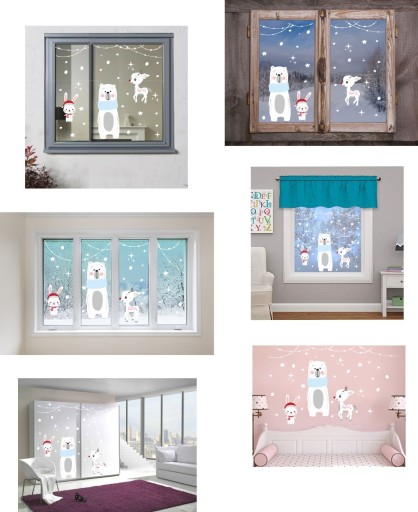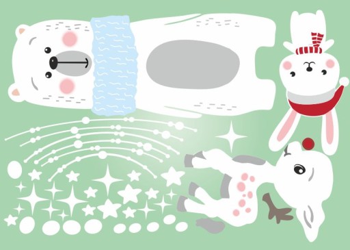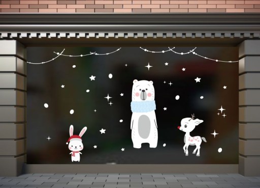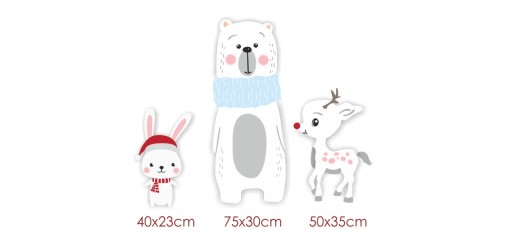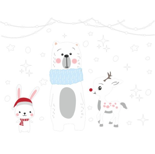 Naklejka świąteczna z misiem, króliczkiem i reniferem