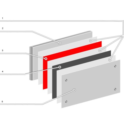 Tablica wykonana jest z tafli szkła hartowanego (bezpieczne szkło ESG), blacha została wyposażona w otwory montażowe wyprofilowane w jednorodnym materiale.