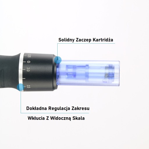 - dokładna skala zakresu wkłucia kartridża