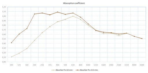 Panel ścienny pochłania szerokopasmowo w zakresie 100-20000 Hz. W przeciwieństwie do paneli wypełnionych wełną mineralną lub szklaną tutaj podstawowym materiałem pochłaniającym są płyty z bardzo gęstej, sprasowanej wełny z włókien poliestrowych, nowoczesny materiał o doskonałych parametrach akustycznych, neutralny dla zdrowia, niepylący, bezzapachowy, niechłonący wilgoci, trudnopalny, posiadający atesty do stosowania wewnątrz pomieszczeń.