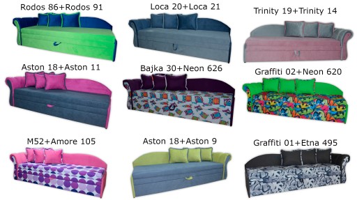 Nowoczesna kanapa w atrakcyjnej cenie i ciekawej kolorystyce. Wygodna kanapa idealna do pokoju dziennego, salonu lub pokoju młodzieżowego. Rozkładana z funkcją spania, zawiera pojemnik na pościel i poduszki w cenie.