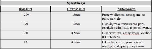 4. Głowicę 1200 igieł do zabiegów na ciele