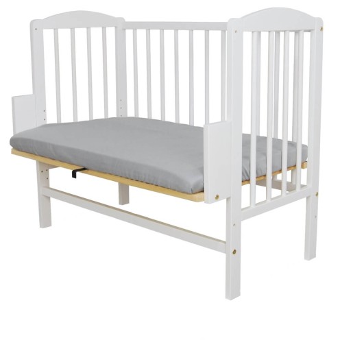 Aukcja dotyczy łóżeczka w kolorze białym kryjącym, pozostałe kolory dostępne są na innych naszych aukcjach. Kolor kryjący, nie prześwituje struktura drewna, malowanie natryskowe tworzy jednolitą białą powierzchnię.
