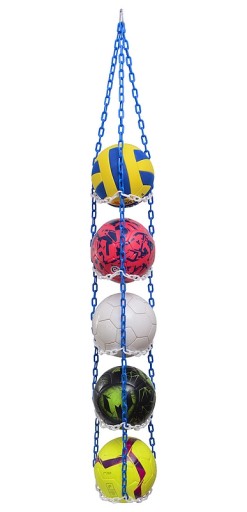 Hak dołączony do zestawu należy zamocować do sufitu lub półki, następnie wystarczy zawiesić na nim wieszak. Produkt jest komfortowy w użytkowaniu, zarówno umieszczanie w nim piłek, jak i ich wyciąganie jest szybkie i wygodne.