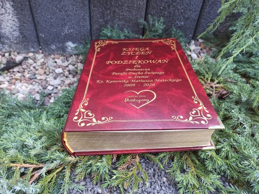 W cenie z aukcji wykonamy dowolny wyzłocony nadruk na okładce księgi.