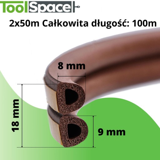 Uszczelka DO OKIEN typ D brązowa, 100mb Uszczelki ToolSpace są:
