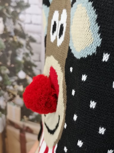 Świąteczny Sweter z Reniferem Nos 3D w kolorze czarnym