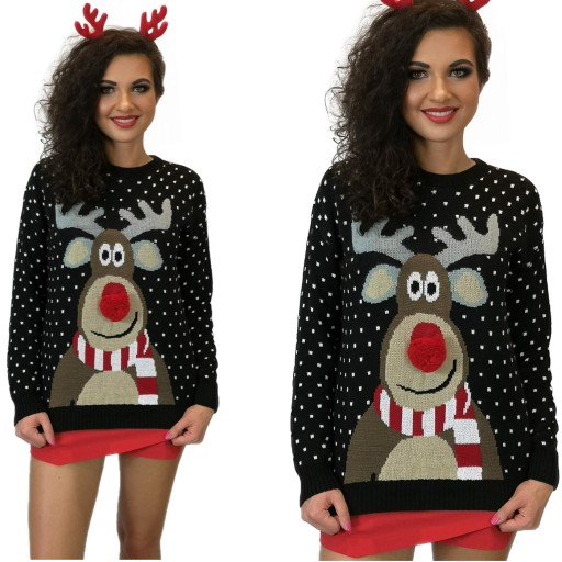 ŚWIĄTECZNE SWETRY Z RENIFEREM NOS 3D CZARNY R S/M
