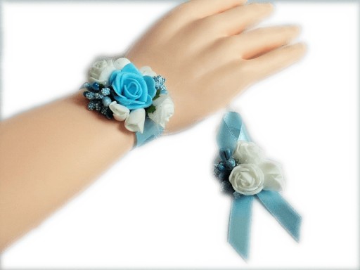 Oryginalny zestaw - kotylion i bukiecik na rękę.