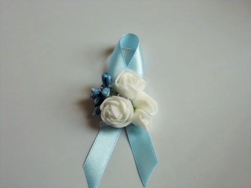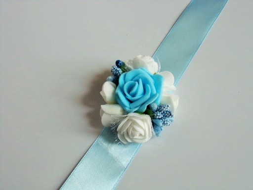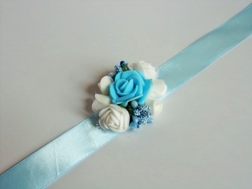 Na rękę wiązany jest za pomocą satynowej tasiemki o szerokości 25mm i długości ok. 40cm.
