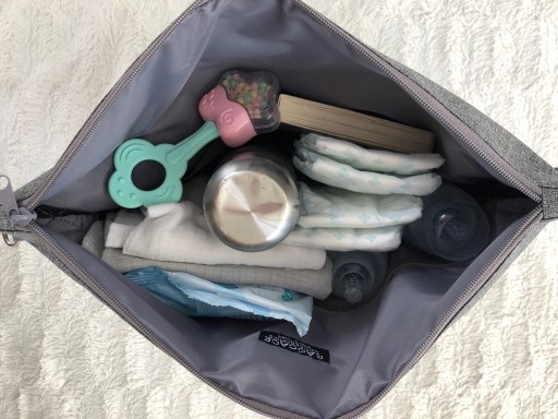 Organizer posiada uniwersalne uchwyty do każdego wózka, które bardzo łatwo przymocować. Torba pomieści wszystkie potrzebne rzeczy, butelkę, pieluszkę, ubranko, telefon czy zabawki.