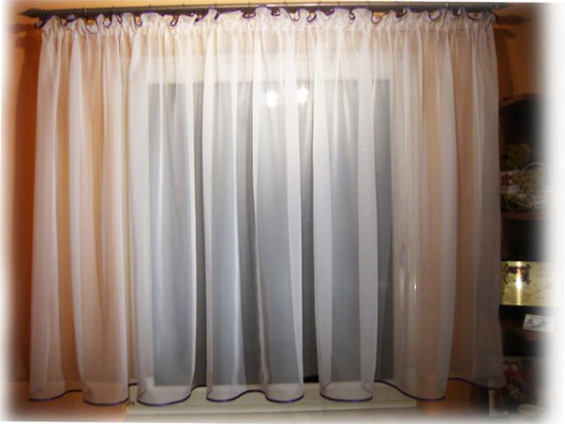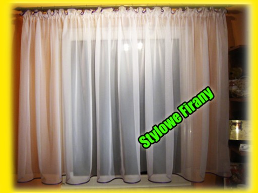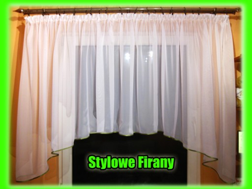 Firanka może być uszyta z górna falbanką obszytą lamówką lub bez falbanki jak również na tunel (z falbanką lub bez falbanki)