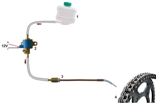 Zestaw do oliwienia łańcucha umożliwia zrealizowanie automatycznego smarowania łańcucha motocyklowego co zdecydowanie wydłuża jego żywotność.