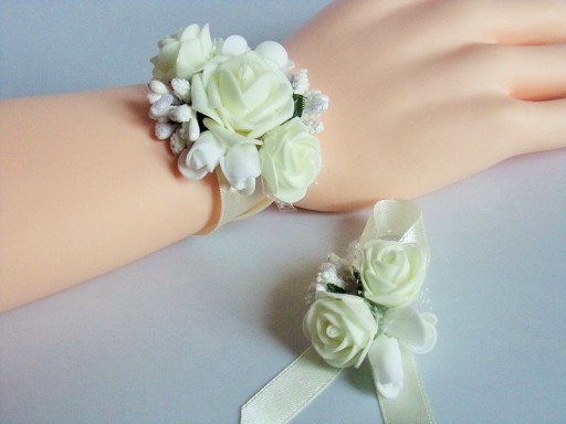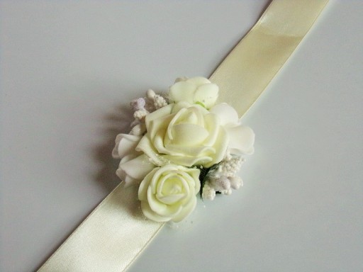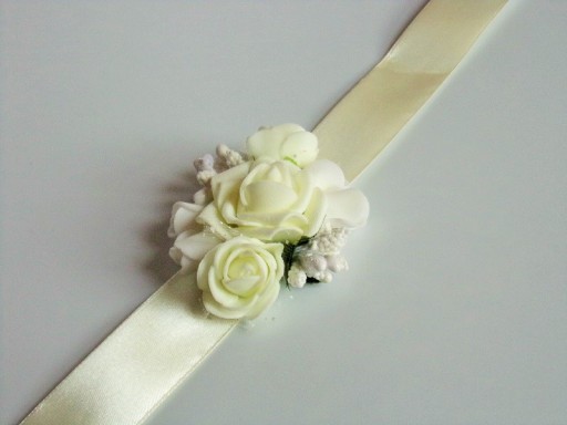 Na rękę wiązany jest za pomocą satynowej tasiemki o szerokości 25mm i długości ok. 40cm.