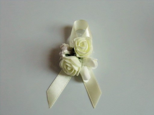 Bukiecik wykonany jest z piankowych róż, zielonych listków i dodatków florystycznych.