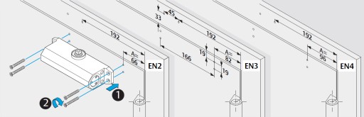 - Regulowana siła zamykania EN 2/3/4 poprzez przestawny montaż samozamykacza względem zawiasów