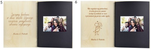 Album z drewnianą, z spersonalizowaną okładką, miejscem na życzenia i podpis stanowi alternatywę dla kwiatów i butelki wina. Z powodzeniem może zastąpić również papierową kartkę.