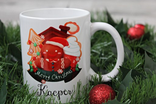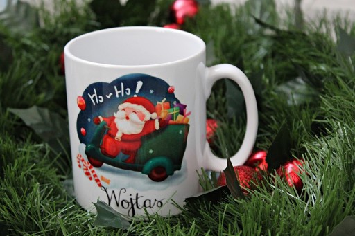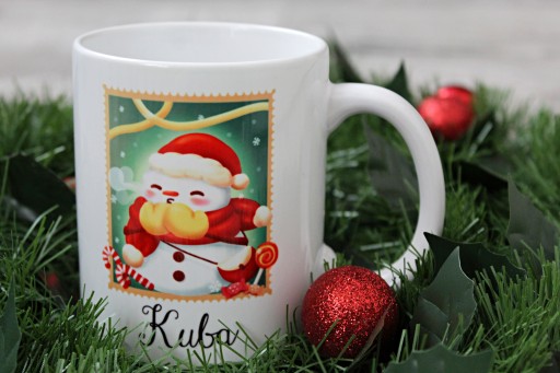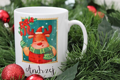 Kubek świąteczny ozdobiony w wzór świąteczny(do wyboru) z imieniem. Idealny na prezent świąteczny w kartoniku.