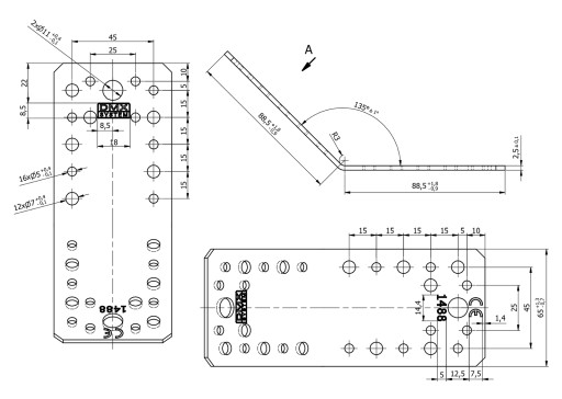 ОТКРЫТЫЙ УГОЛ 135° КРЕПЛЕННЫЙ СОЕДИНИТЕЛЬ 90x90x65 2,5MM KLR