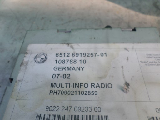 PRZEDMIOTEM AUKCJI JEST WIDOCZNE NA ZDJĘCIU RADIO DO BMW 6919257 NIE SPRAWDZONE BRAK KODU SPRZEDAJE NA CZĘŚCI