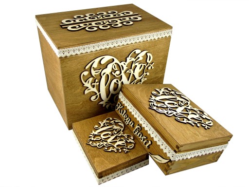 Piękna brązowa, drewniana Księga Gości w formie szkatułki z sercami