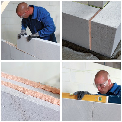 - Klejenie bloczków z betonu komórkowego i ceramiki porowatej w ściankach działowych (nieobciążanych konstrukcyjnie) i małej architekturze.