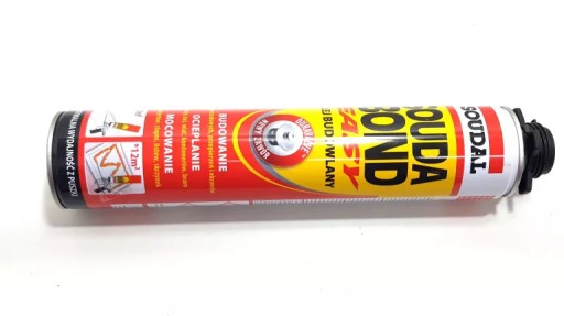 Klej budowlany Soudabond Easy szybkoschnący wysokowydajny klej do styropianu przystosowany do aplikacji pistoletem przeznaczony do mocowania płyt G-K i paneli styropianowych wewnątrz i na zewnątrz pomieszczeń.