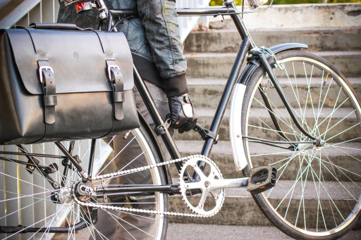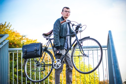 Uchwyt do roweru jest wykonany z naturalnej skóry, dzięki czemu dobrze uzupełnia klasyczną stylizację miejskiego rowerzysty.