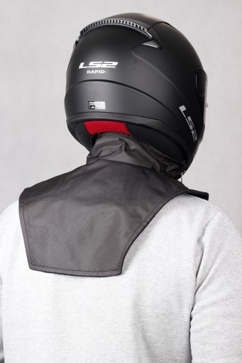 Kołnierz zachodzi tuż pod kask jednocześnie nie kolidując z nim.