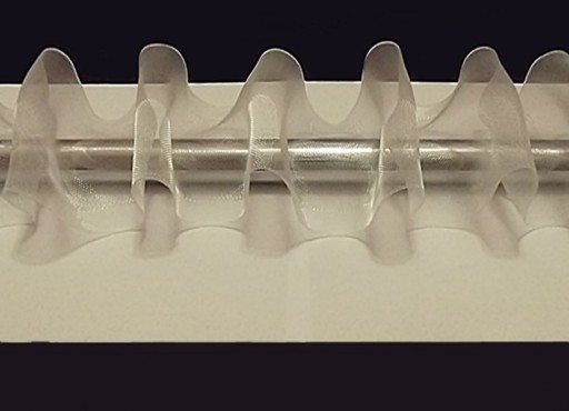 Taśma posiada z tyłu szelki, które bardzo ułatwiają wieszanie firan czy zasłon. Wystarczy wsunąć taśmę bezpośrednio na rurkę karnisza. Dodatkowo taśma ładnie układa firany i zasłony w równomierne fałdy.