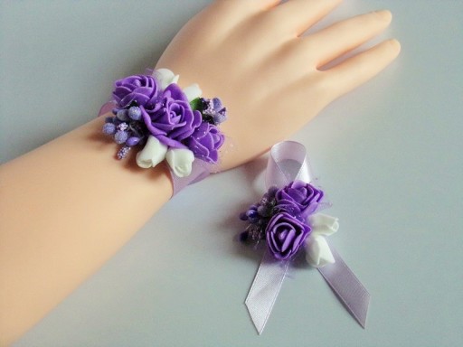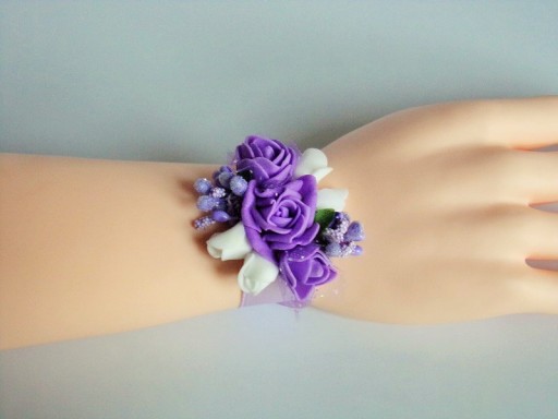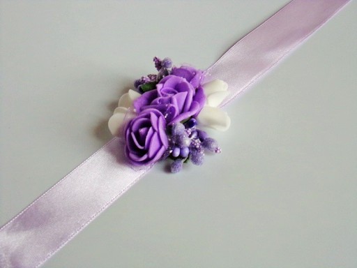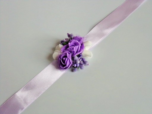 Na rękę wiązany jest za pomocą satynowej tasiemki o szerokości 25mm i długości ok. 40cm.