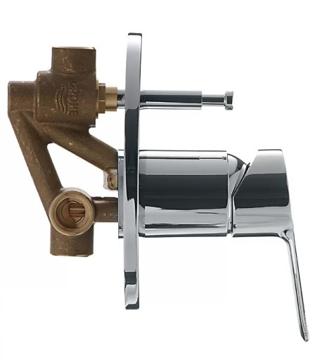 Dwa wyjścia wody zmieszanej oraz dwa wejścia: na wodę ciepłą i zimną