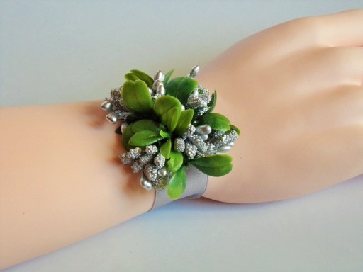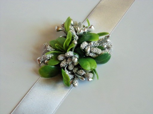 Na rękę wiązany jest za pomocą satynowej tasiemki o szerokości 25mm i długości ok. 40cm.