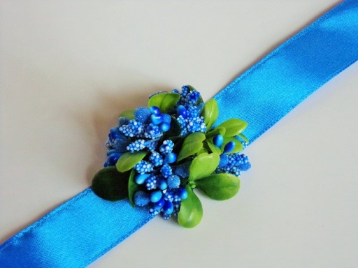 Na rękę wiązany jest za pomocą satynowej tasiemki o szerokości 25mm i długości ok. 40cm.