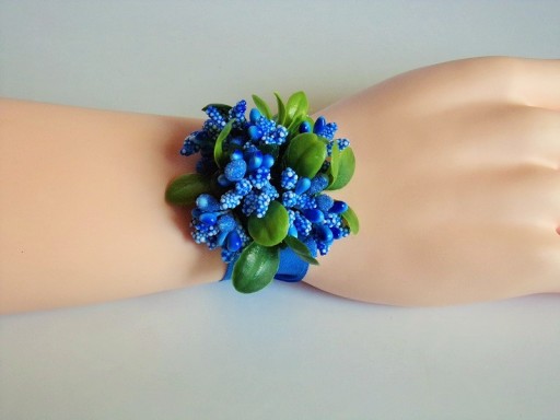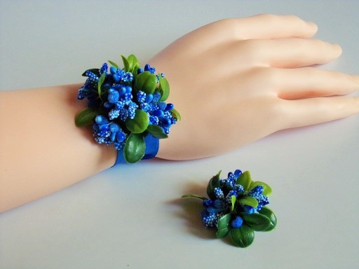 Na innej aukcji dostępne są pasujące do przypinek bukieciki na rękę dla pań.
